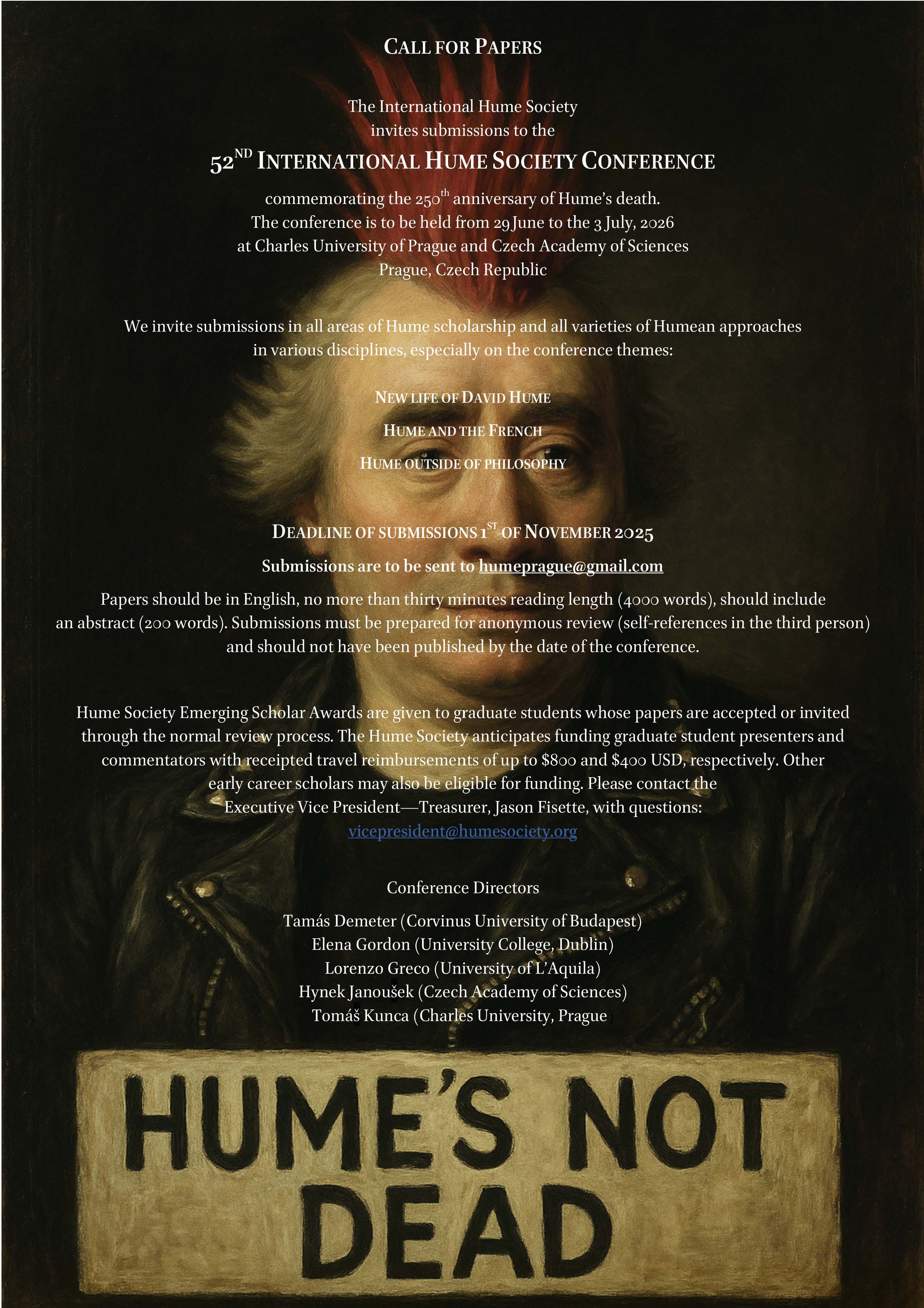 09/04/2025: CFP: 52nd Annual Hume Conference. Prague, 29 June-3 July 2026 DEADLINE EXTENDED UNTIL 30 NOVEMBER